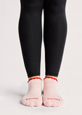 Experience the perfect balance of comfort and security in your next barre3 class with our barre3 Ankle Grip Socks. Our custom-designed grip socks feature a durable, non-slip sole for maximum stability and a supportive, breathable knit to keep you comfortable through every plank, pulse, and stretch. Show your studio pride and elevate your practice with the essential accessory for every barre3 enthusiast.